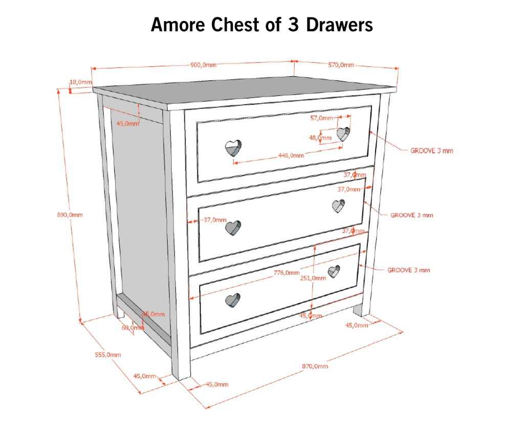 The white dresser combines a timeless, fresh design with soft, romantic accents. It's a favorite for anyone who appreciates elegant furniture. This dresser, with its optional top, is not only a beautiful addition to a nursery but also very practical thanks to its three spacious drawers. Of course, this dresser also works perfectly in a child's or teenager's room by removing the top. Let yourself be seduced by the charm of this room with its heart-shaped detail.