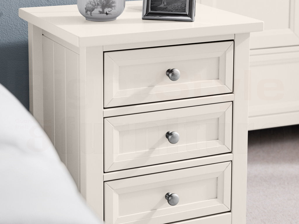 Maine Is An Elegant New England Style Range Of Bedroom Furniture. The Combination Of Exquisite Surf White Lacquered Finish With Characteristic Side Panelling And Detailed Chamfered Cabinetry Makes For A Soothing And Refined Aesthetic With Timeless Appeal, While Delicate Pewter Handles Add The Perfect Finishing Touch.