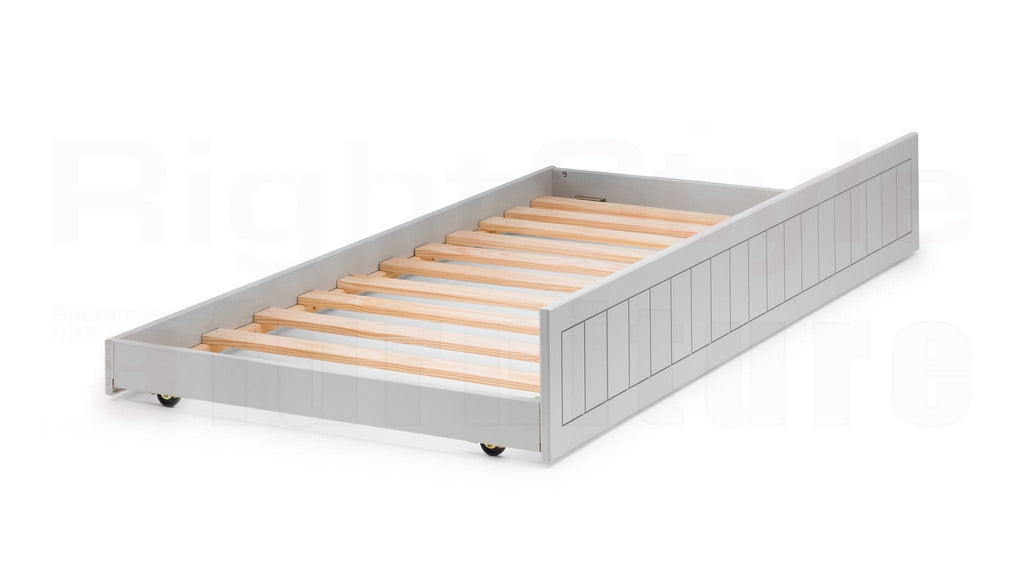 Crafted From Mdf In A Stunning Dove Grey Lacquer, The Maine Underbed Features Characteristic Panelling, Creating A Refined Aesthetic. Forming An Extra Bed When Needed For Your Guests, The Underbed Can Be Neatly Tucked Away Under Its Perfect Companion, The Maine Bookcase Bed, When Not In Use Forming The Ultimate Space Saving Solution. Length: 189Cm & Width: 95Cm Height: 29Cm