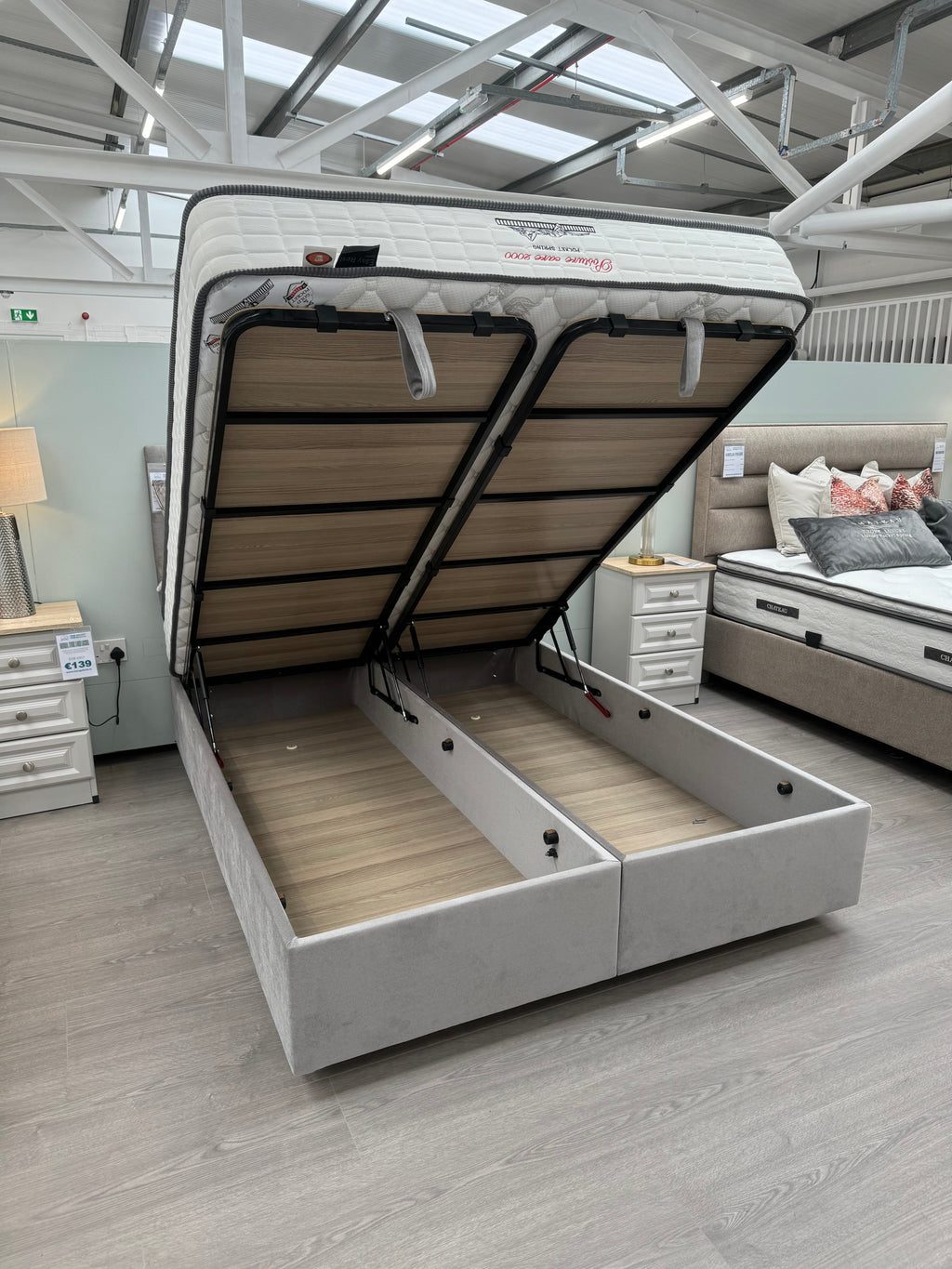 The Brona 5ft Ottoman Bed Pack includes our Back Care Orthopaedic Pocket Sprung Mattress. It also includes headboard and x 4 piston gas system to ensure easy lifting when accessing your underneath storage.