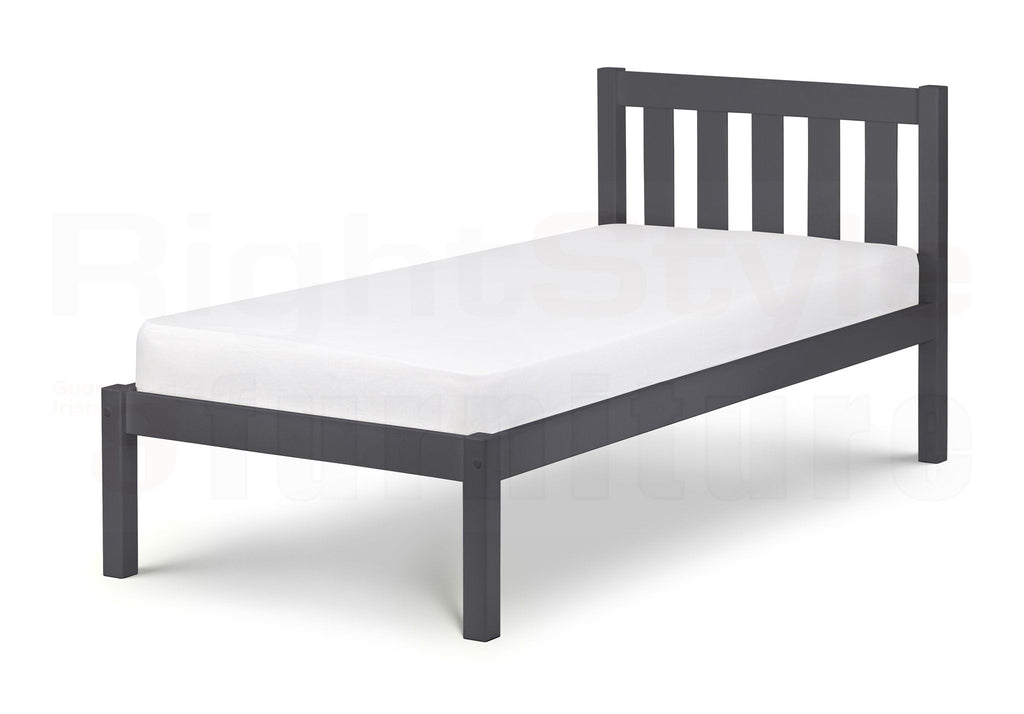 Crafted From Solid Pine With An Anthracite Lacquer, The Jadoo Bed Is Perfect For A Wide Range Of Traditional And Contemporary Bedroom Décor With Its Simple, Yet Stunning Design. Offering A Strong, Durable Construction, This Bed Features A Solid Slatted Base, Ensuring A Comfortable Night's Sleep. The Perfect Match For The Rightstyle Furniture Bangor Bedroom Collection. Length: 98Cm & Width: 201Cm Height: 92Cm