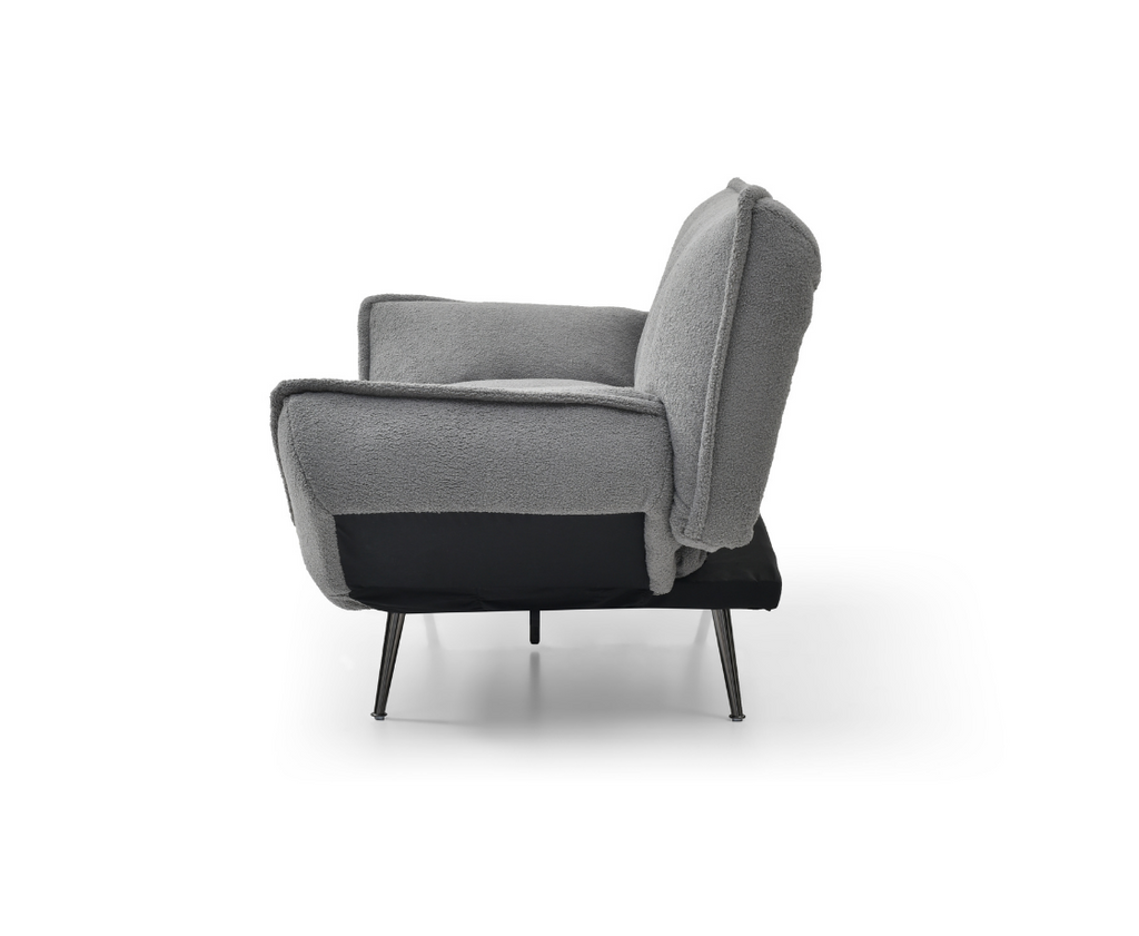 It is upholstered in sherpa fabric, which adds coziness and luxury to the sofa bed, inviting you to relax and unwind.