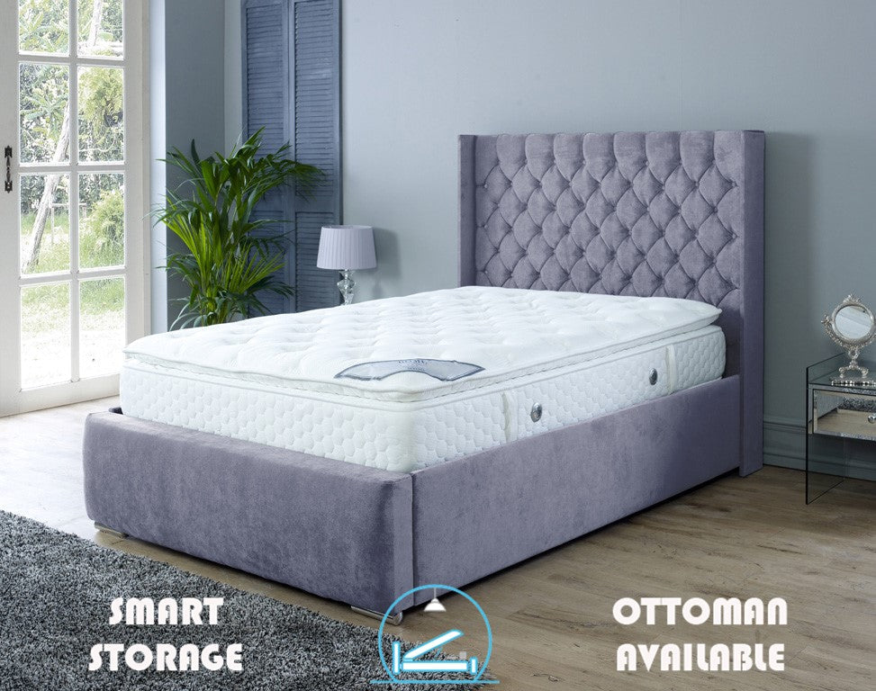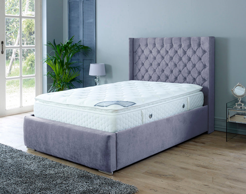 Our Fabulous Rose Standard Bed Frame Features A Headboard Which Sits Beautifully On Top Of The Side Rails With Fantastic Hand Pleated Upholstery Each Bed Is Available In A Variety Of Different Colours And Fabrics All In The Latest On Trend Fashion Finishes, There Is Also An Option For You To Choose Fabric Buttons Or Diamante Buttons To Suit Your Individual Room Style *Also Available With A Luxury Ottoman Option, See Our Ottoman Bed Section For More*