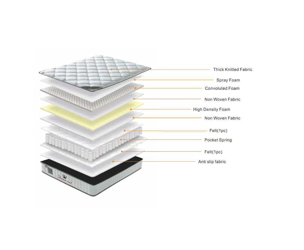Inside, layers of high-density foam and convoluted foam work together to deliver excellent pressure relief while improving airflow to keep you cool throughout the night. The 1400 pocket spring system responds individually to your body, offering tailored support and minimizing motion transfer for uninterrupted sleep.