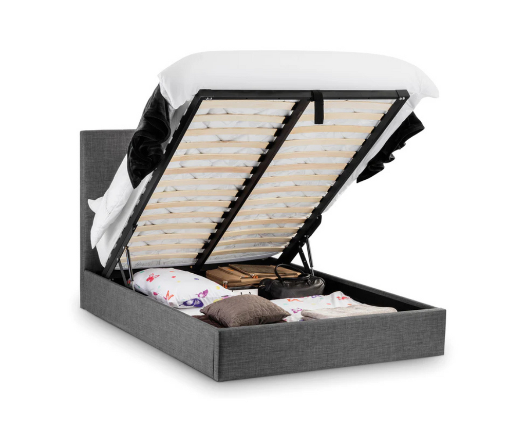 Sorrento is a stunning fabric bed, beautifully upholstered in a sophisticated slate grey linen fabric. A contemporary high headboard with immaculately finished diamond shaped feature buttoning makes an impressive style statement, while a gas-powered lift-up Ottoman offers a phenomenal amount of storage space. A sprung slatted base ensures a good night's sleep and prolonged mattress life. Sorrento is the perfect combination of stylish design and quality and offers fantastic value for money.